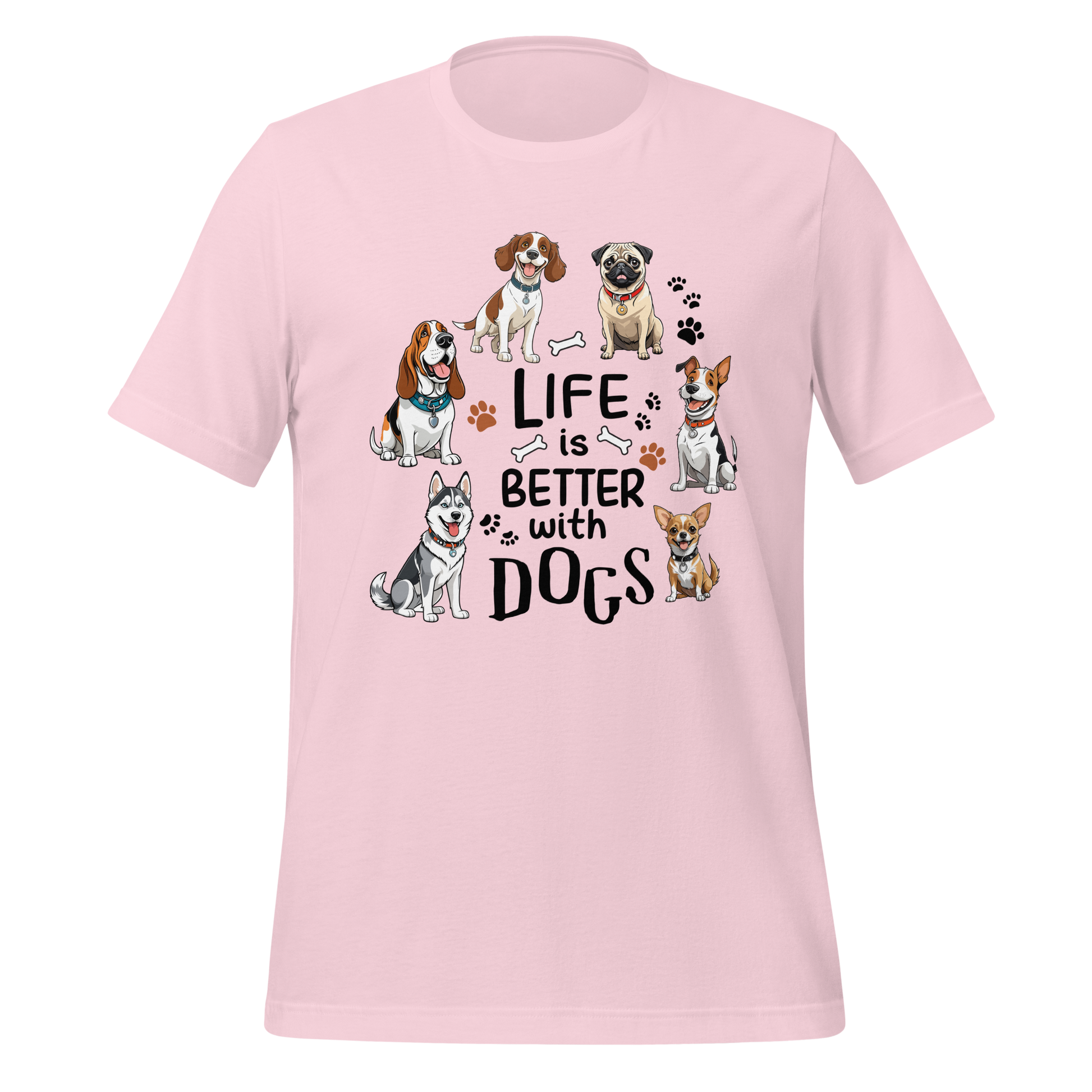 - This t-shirt is made for those who see dogs as part of their soul stylishly designed with multiple breeds and the phrase "Life is better with dogs." Made from soft, durable fabric for all-day comfort. A perfect gift for devoted dog lovers.