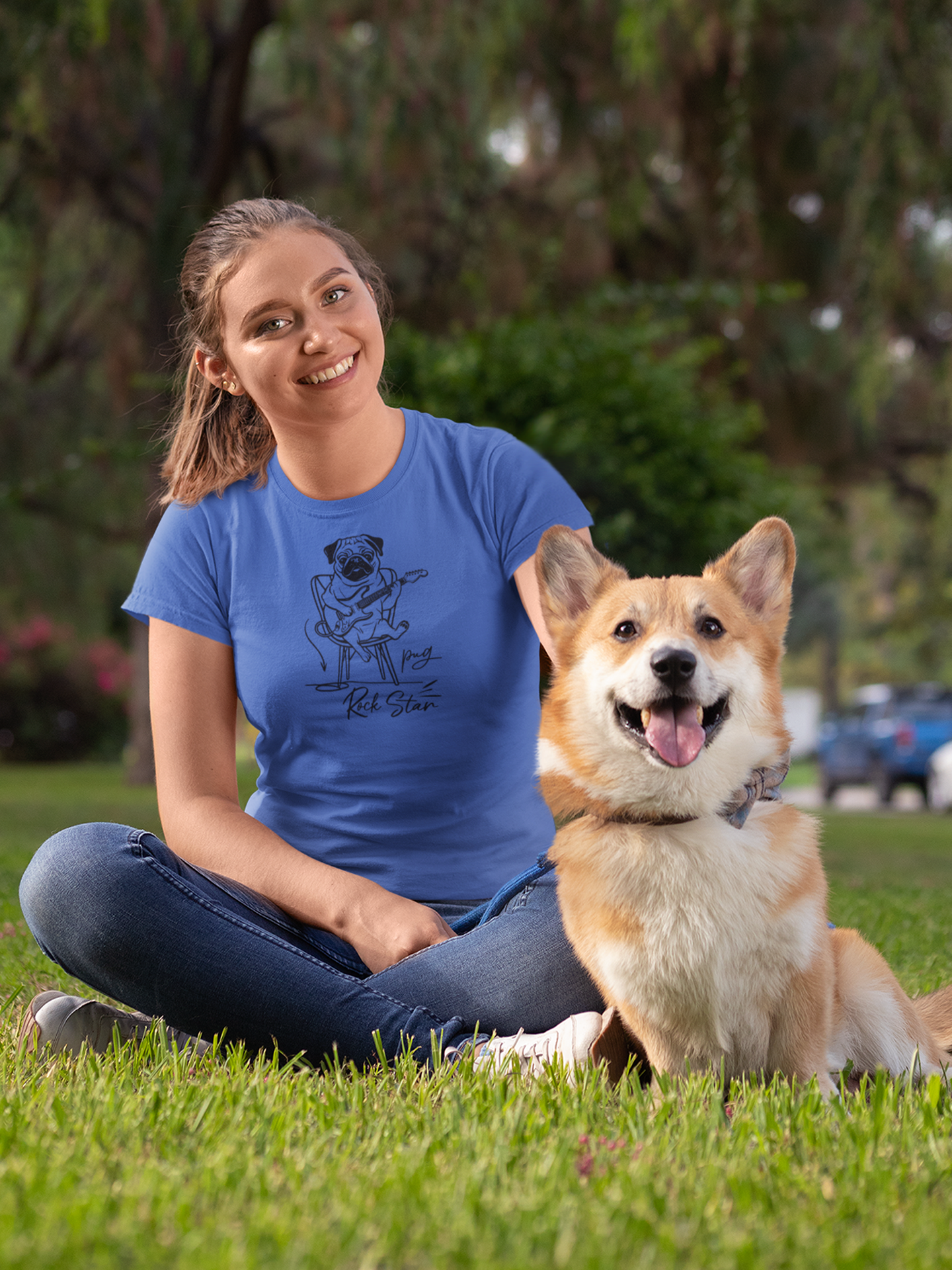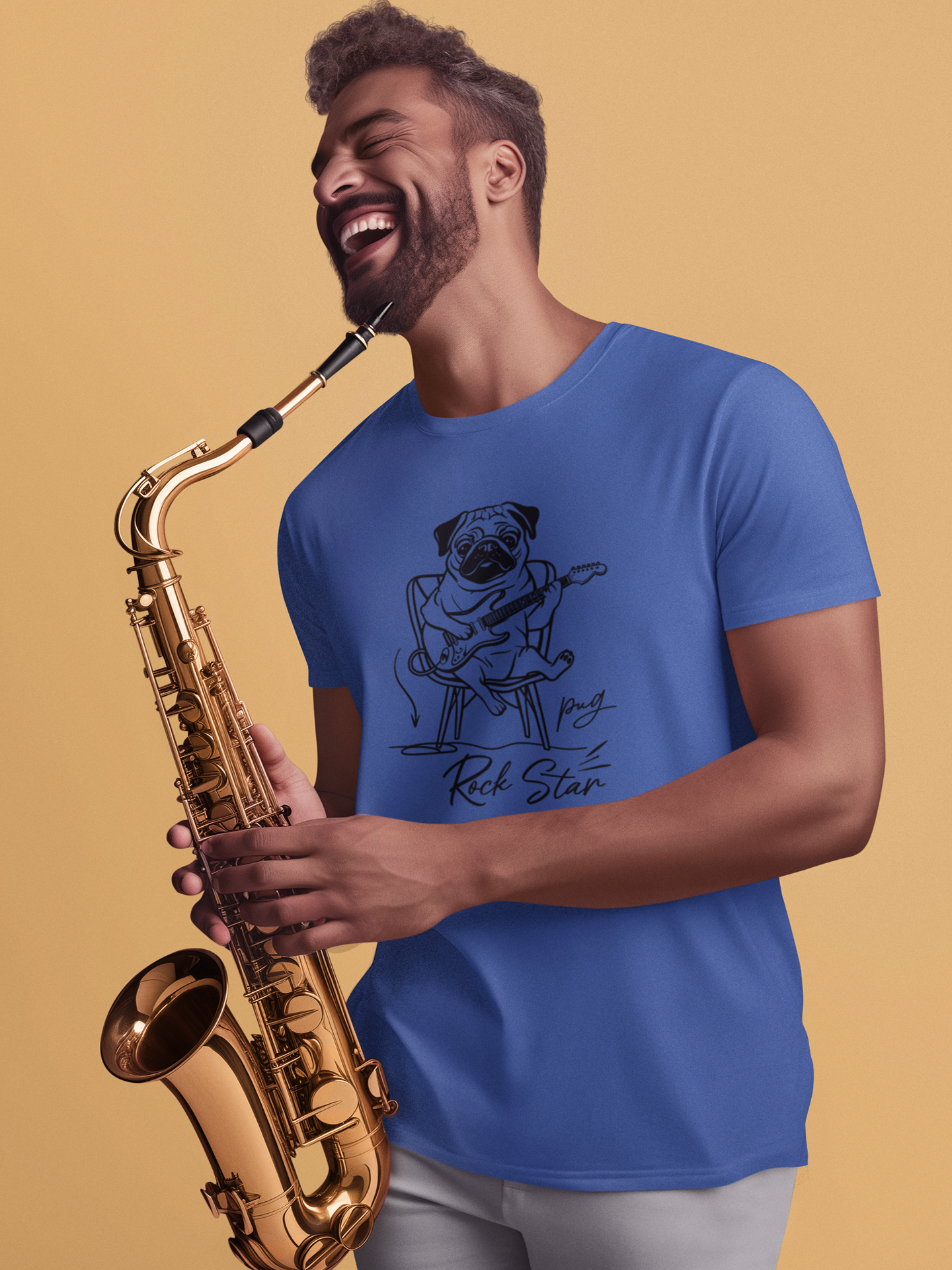 - Featuring a hilarious pug rocking out, this comfy unisex t shirt “Pug Rock Star” is made from high-quality, breathable cotton. Whether you're walking your dog or jamming with friends, this tee brings style and smiles. A perfect gift for dog lovers with a sense of humor.