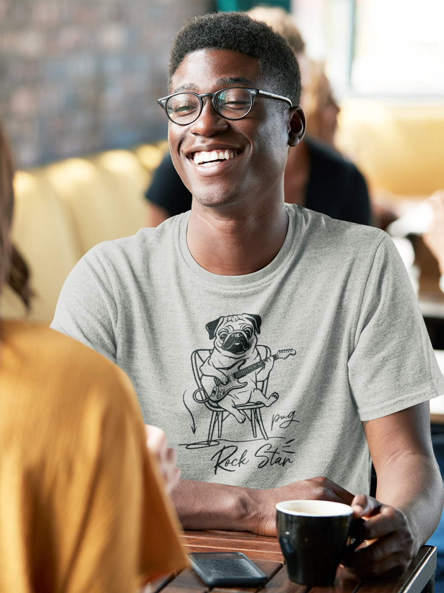 A original and fun t-shirt with a musician pug and the phrase “Pug Rock Star.” A great pick for dog lovers and rock-style fans. Comfortable, stylish, and eye-catching. A must-have gift for dog lovers with a great sense of humor.